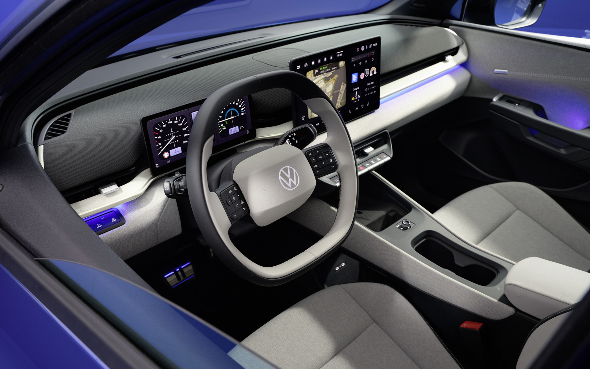 Η καμπίνα του ID. Polo ξεχωρίζει για τη μίνιμαλ αισθητική, την εργονομία αλλά το ψηφιακό ταμπλό. Ο πίνακας οργάνων – με δυνατότητα αναλογικών ενδείξεων – έχει διαγώνιο 10 ίντσες, ενώ η οθόνη αφής για το σύστημα ενημέρωσης και ψυχαγωγίας είναι 13 ιντσών. Δεν λείπουν οι φυσικοί διακόπτες τόσο στην κεντρική κονσόλα όσο και στο τιμόνι, επιλογή που θα ακολουθήσει η Volkswagen και στα επόμενα ηλεκτρικά μοντέλα της.