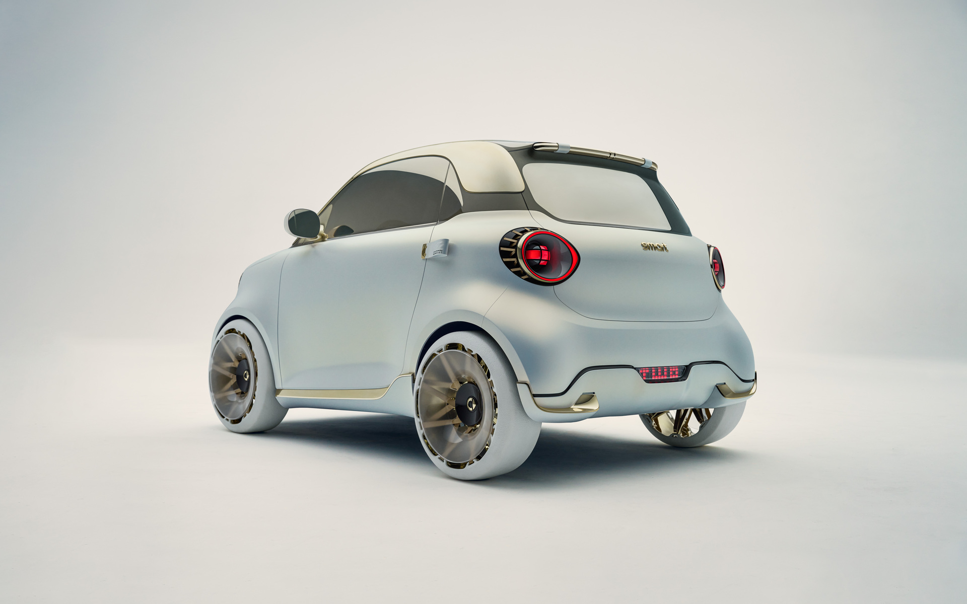 Το smart #2 διατηρεί σχεδιαστική συγγένεια με τα SUV της μάρκας, τα #1, #3 και #5, όμως παραπέμπει ξεκάθαρα στο διθέσιο μοντέλο με τους τέσσερις τροχούς τοποθετημένους στα άκρα του μίνι αμαξώματος. Με μήκος μόλις 2,79 μέτρα και κύκλο στροφής στα 6,95 μέτρα, το smart Concept #2 υπόσχεται ότι οι μανούβρες στην πόλη θα είναι παιχνιδάκι.