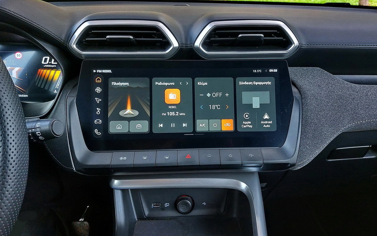 Η μεσαία έκδοση Exclusive που δοκιμάζουμε διαθέτει στάνταρ δύο μεγάλες οθόνες στο ταμπλό. Ο ψηφιακός πίνακας οργάνων 12,3’’ διακρίνεται για την πληρότητα, τη σωστή και όμορφη απεικόνιση των ενδείξεων που αφορούν το όχημα και την οδήγηση, ενώ η κεντρική οθόνη αφής 12,3’’ (10,25’’ στη βασική έκδοση Excite) φιλοξενεί το infotainment, την πλοήγηση και τις ρυθμίσεις των συστημάτων υποβοήθησης του οδηγού.