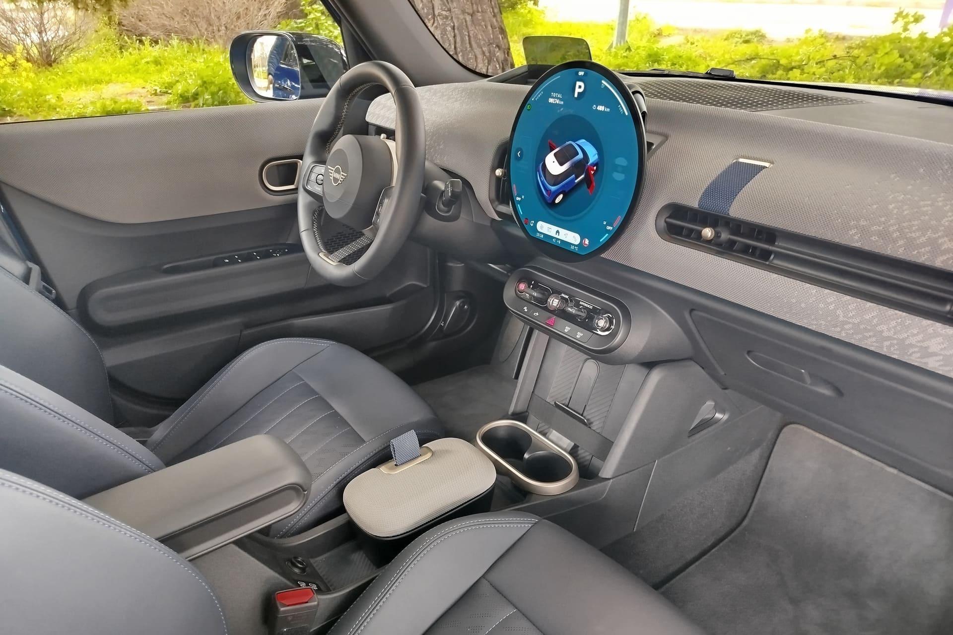 Το πόσο η ΜΙΝΙ θέλει να διαφοροποιείται από τον ανταγωνισμό και ταυτόχρονα να διατηρεί ζωντανή τη σύνδεση με την ιστορία της, γίνεται αντιληπτό και από την εικόνα του εσωτερικού. Ξεχωρίζει για την μίνιμαλ αισθητική, χωρίς περιττά στοιχεία εξοπλισμού. Προσφέρει όμως όλες τις ψηφιακές δυνατότητες μέσω του infotainment τελευταίας γενιάς MINI Operating System 9, το οποίο φιλοξενείται στην κυκλική οθόνη αφής 9,5 ιντσών, τεχνολογίας OLED. Διακρίνεται για τα καλά γραφικά, την ευκολία χειρισμού και την εξαιρετική φωτεινότητα. Όλες οι λειτουργίες του οχήματος ελέγχονται μέσω είτε αφής είτε φωνητικών εντολών.
